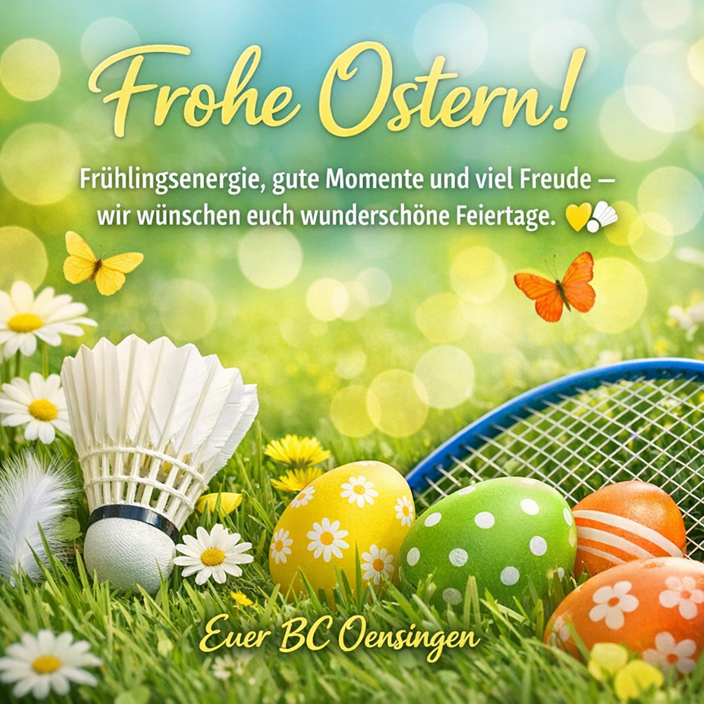 Liebe Mitglieder und Freunde des Badminton Clubs Oensingen, wir wünschen euch allen ein wunderschönes und erholsames Osterfest! 🌸🐰