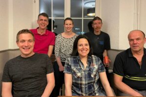 Der Vorstand stellt sich ein weiteres Jahr zur Verfügung, v.l.: Yannik (Aktuar), René (Cheftrainer), Sabina (Vize-Präsi, Kassier), Claudia (Präsi), Patrick (neues Ehrenmitglied, Ralph (Materialwart).