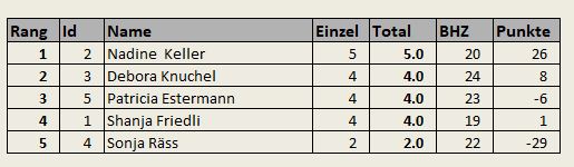 Rangliste Damen